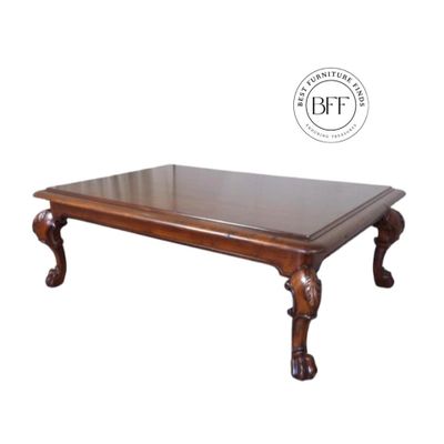 Beautiful Ralph Lauren Rustic Carved Wood Coffee Table. This stunning table will bring elegance and style to any home. It is in excellent pre-owned condition, with just a few light scratches or blemishes typical of a table this age. We have done a light restoration on the top and the feet and it looks beautiful!